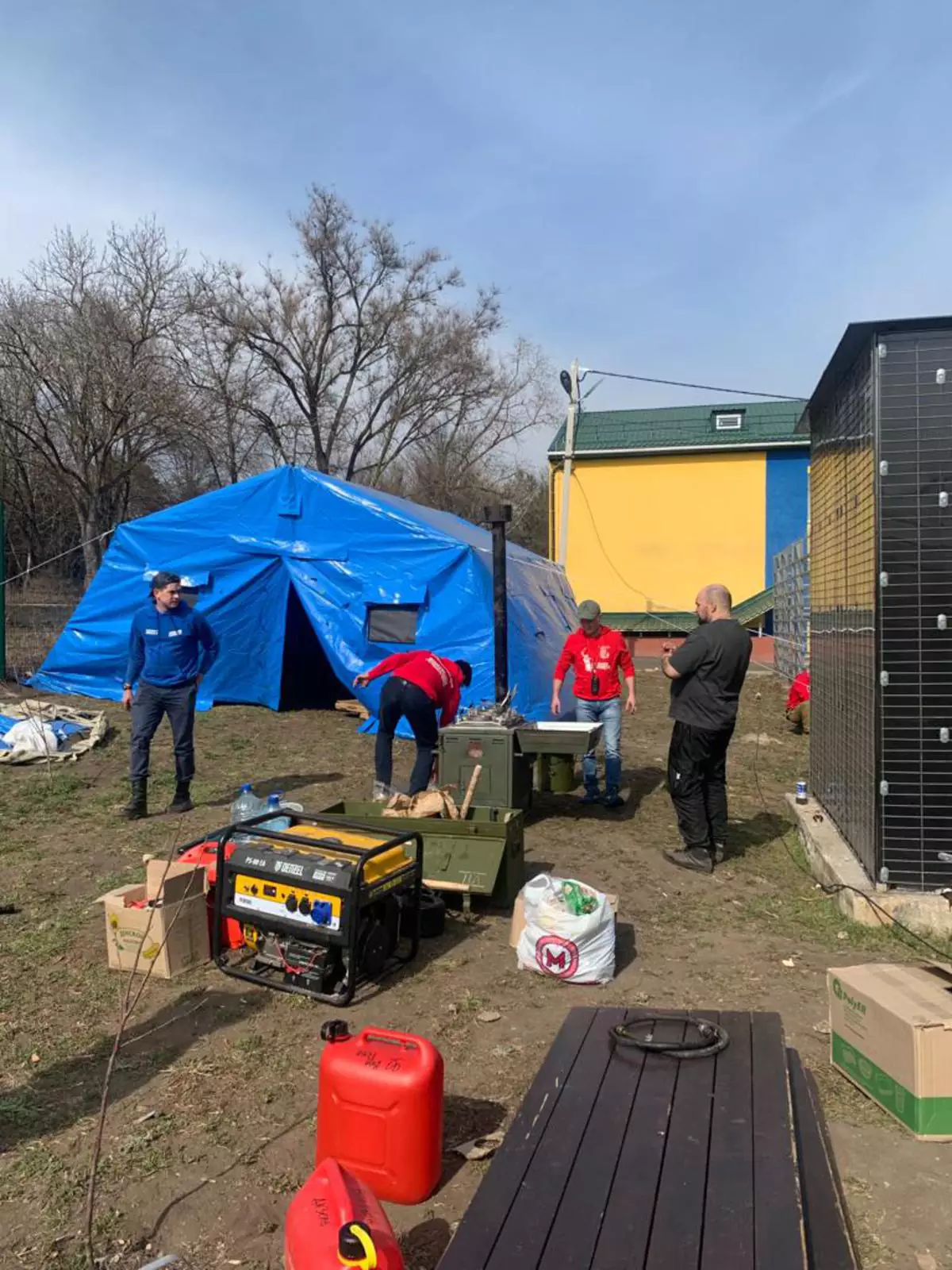 «Сегодня наш сводный отряд добровольцев прибыл на территорию Донецкой народной республики и незамедлительно приступил к работе в двух пунктах временного размещения людей, в которых мы развернули свой собственный автономный полевой лагерь. Это позволит нам не отвлекаться на бытовые проблемы», — отметил Демидов.