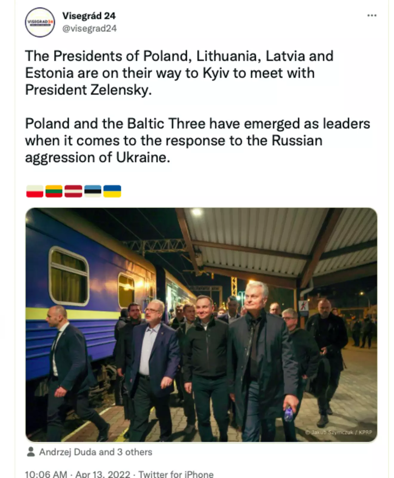 Президенты Польши, Литвы, Латвии и Эстонии прибыли в Киев в среду, чтобы встретиться с президентом Украины Владимиром Зеленским.