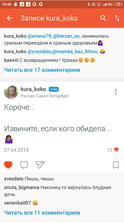 Последний раз, когда она появилась, в ее постах стало много грусти: она жаловалась, что поссорилась с мужем, что у нее подозревают рецидив, что у сына тоже проблемы со здоровьем.
