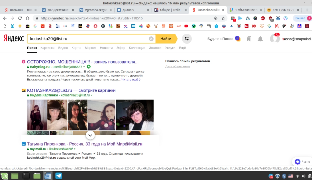 Проверив e-mail из этого объявления, детективы из приложения для молодых мам нашли вторую фамилию, которой пользовалась Танечка: не Панасюк, а Пиренкова.