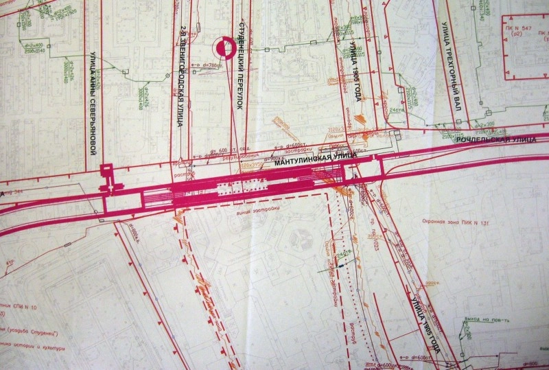Ещё одна станция, исключённая из проекта по причине смены трассировки Калиниско-Солнцевской линии, должна была находиться под Мантулинской улицей. По чертежу трудно понять, то ли она была колонной трёхпролётной, то ли колонной глубокого заложения. Восточный вестибюль станции должен быть связан с действующим подземным пешеходным переходом под улицами Мантулинская и 1905 года.