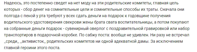 Как правило, через несколько дней родители выясняют, что «глава родительского комитета» никакого отношения к собранию не имела.