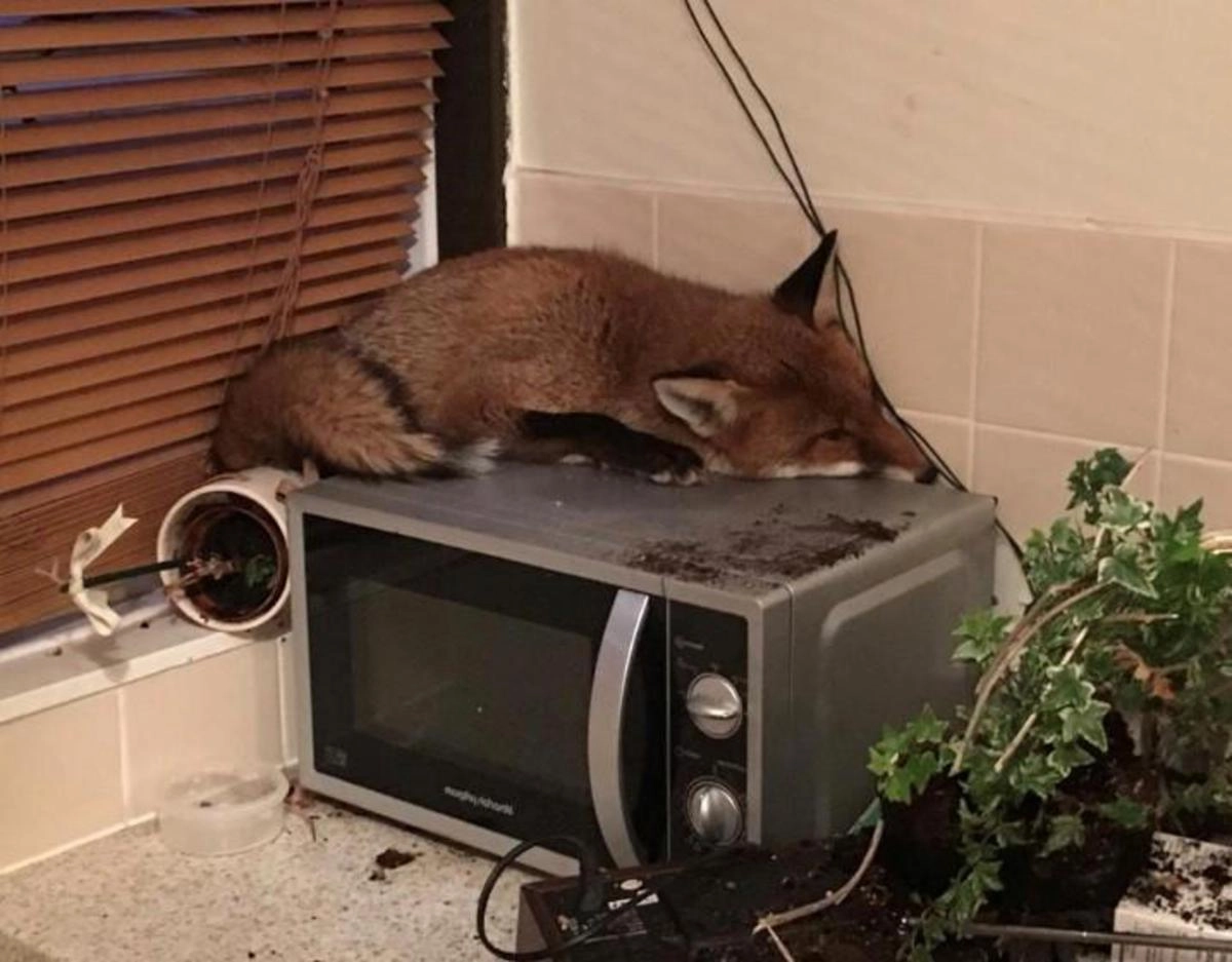 Семья из Лондона обнаружила в своём доме лису, которая мирно спала на микроволновой печи. Хозяйка дома Ким Фрайер (Kim Fryer) рассказала, что животное обнаружила её дочь, когда пришла на кухню позавтракать: