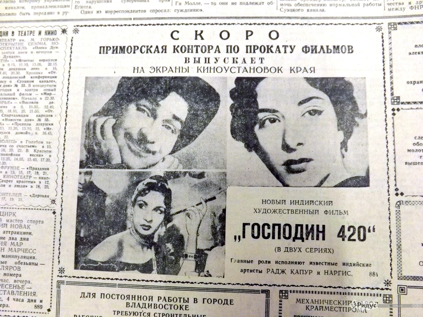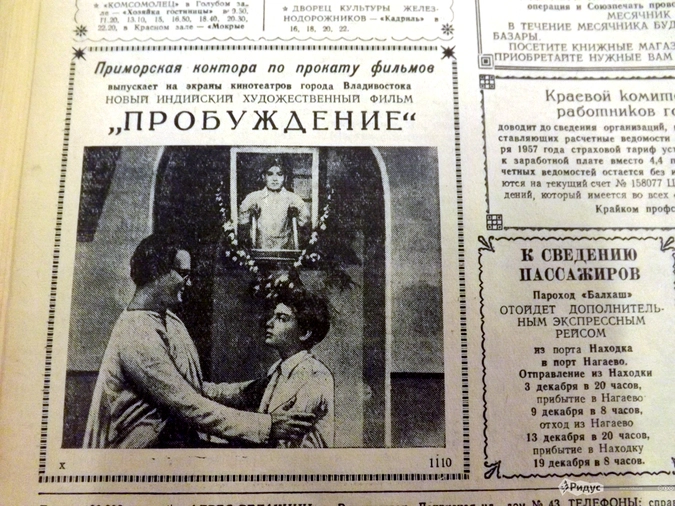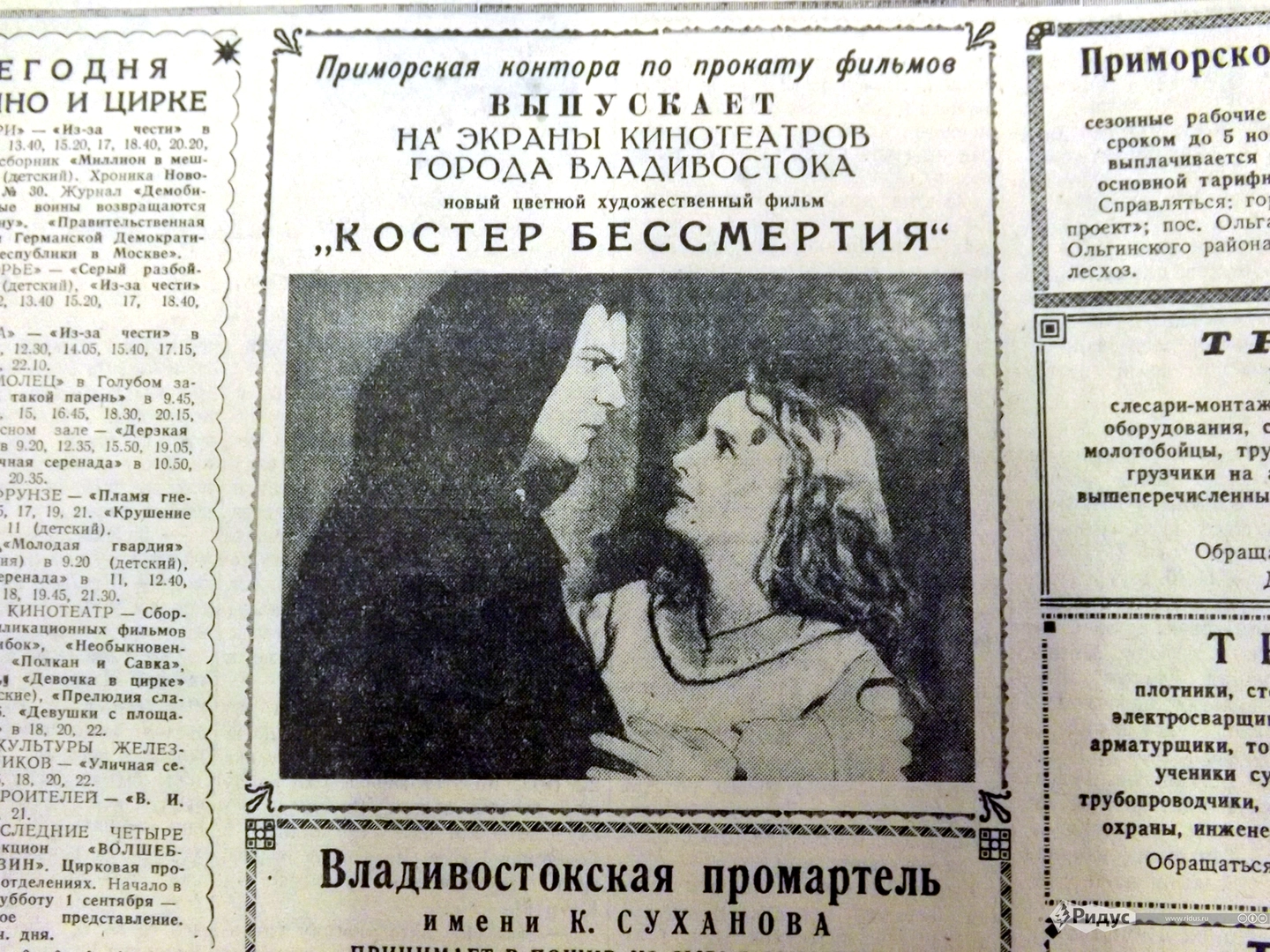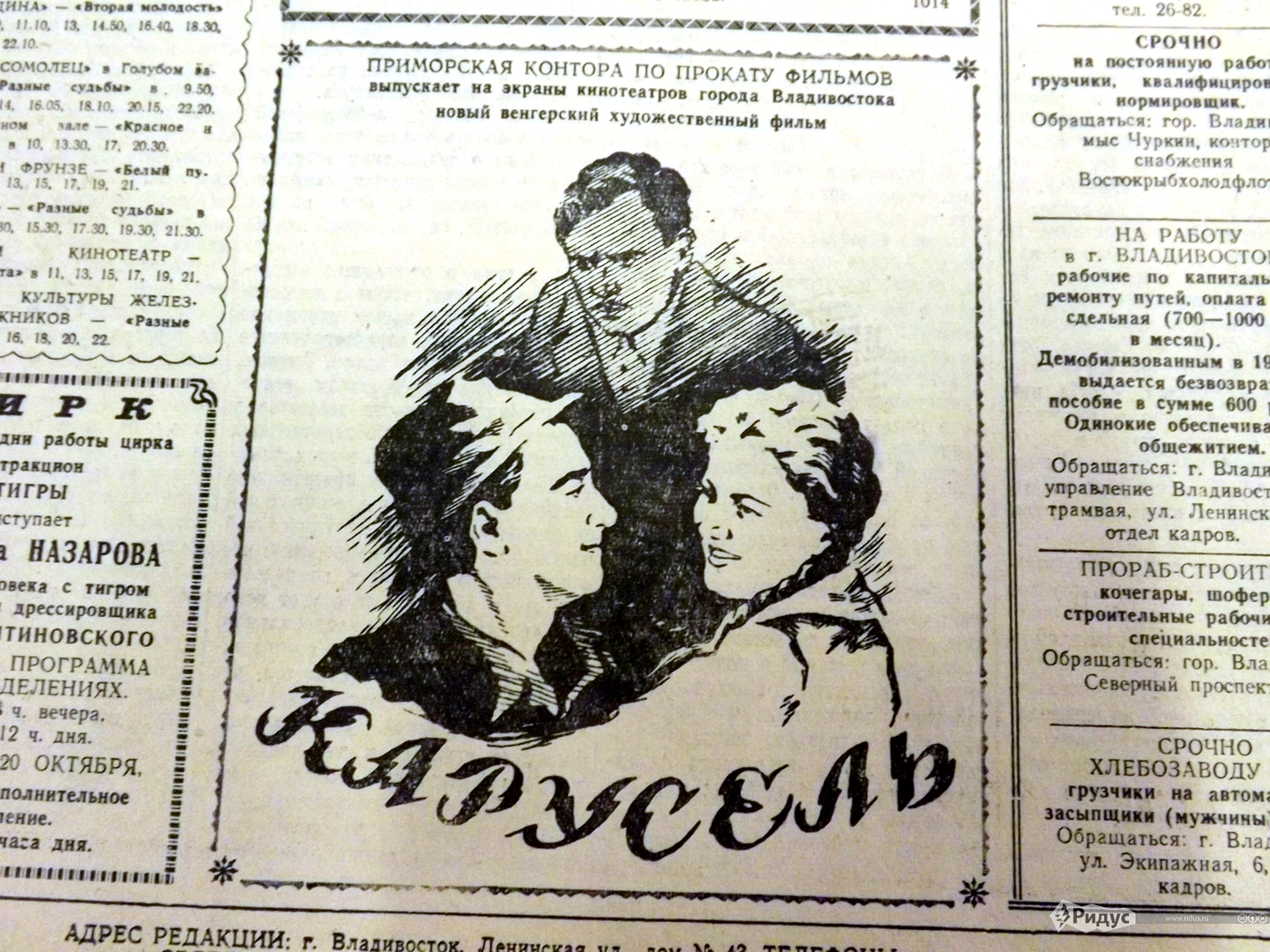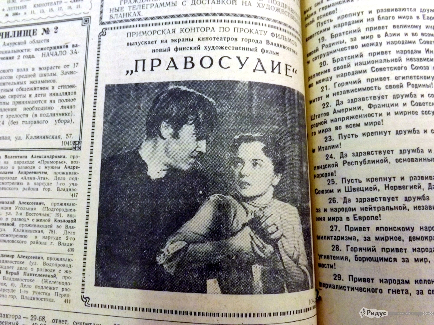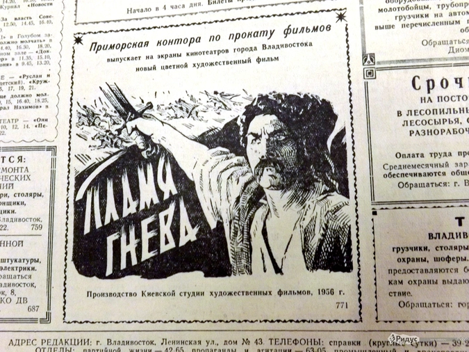 Сейчас такого изобилия у нас попросту нет. Единственная замена подобному, ушедшему в прошлое прокату, как верно отметил Александр Роднянский, — кинофестивали. Во Владивостоке это — «Меридианы Тихого», собравшие в свою программу лучшее со всего света. А в 1956-м, как свидетельствует «Красное знамя», не надо было ничего и собирать: кино просто было, иди и смотри.