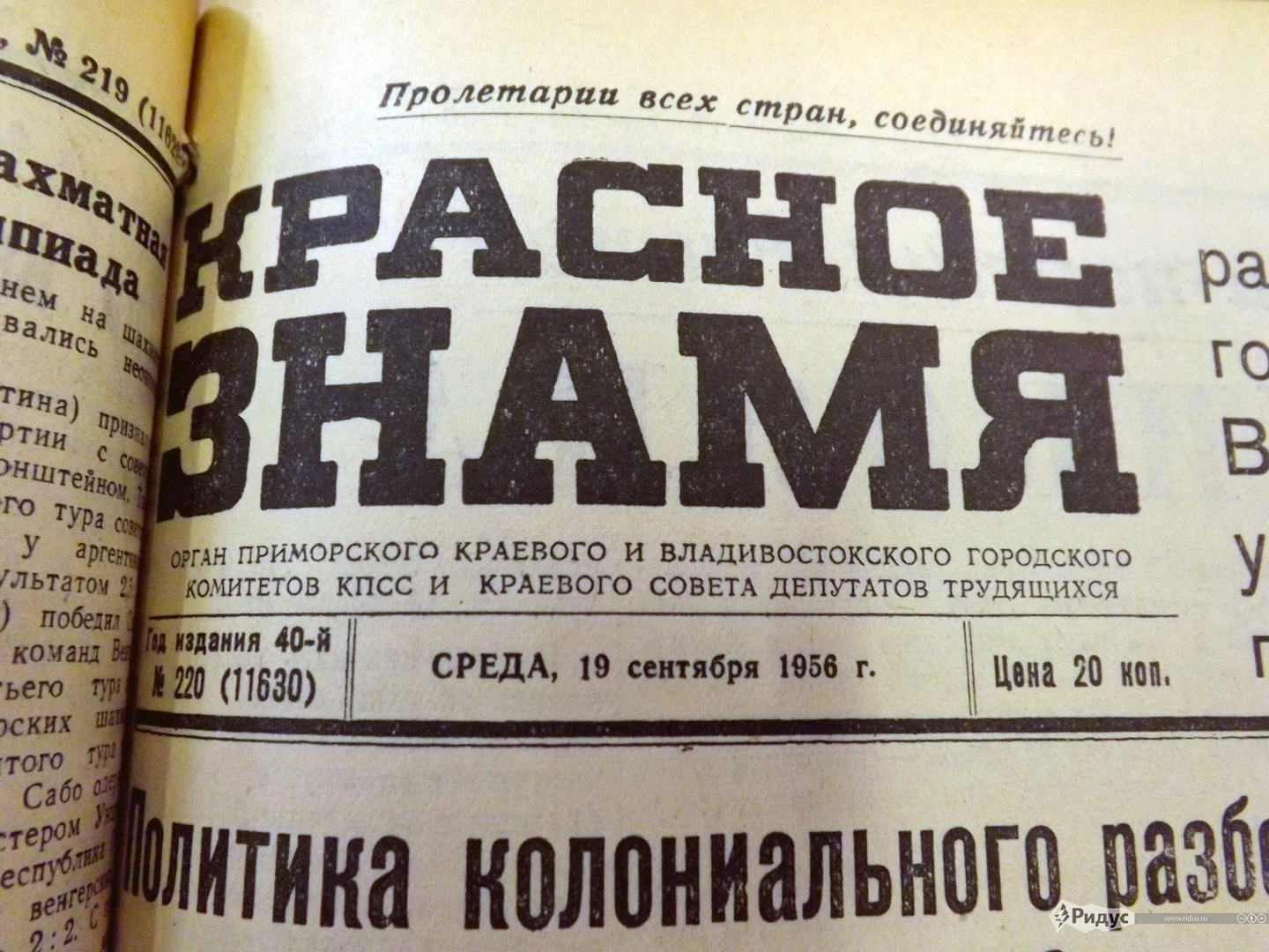 Подшивка выходившей во Владивостоке газеты «Красное знамя» за второе полугодие 1956-го года позволяет узнать много интересного о временах, давно канувших в лету.
