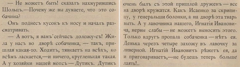 Это отрывок из «Записок маленькой гимназистки» (1908) Лидии Чарской. Практически забытая сегодня, писательница была «властителем дум» школьников в начале XX века. В 1911 году комиссия при Московском обществе распространения знаний докладывала на съезде по библиотечному делу, что, согласно проведённым опросам, дети среднего возраста читают в основном Гоголя (34%), Пушкина (23%), Чарскую (21%), Твена (18%), Тургенева (12%). И вот вам ливерная колбаса, как ангельский подарок.