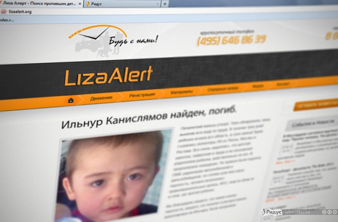 Снимок главной страницы сайта lizaalert.org. © Ridus.ru