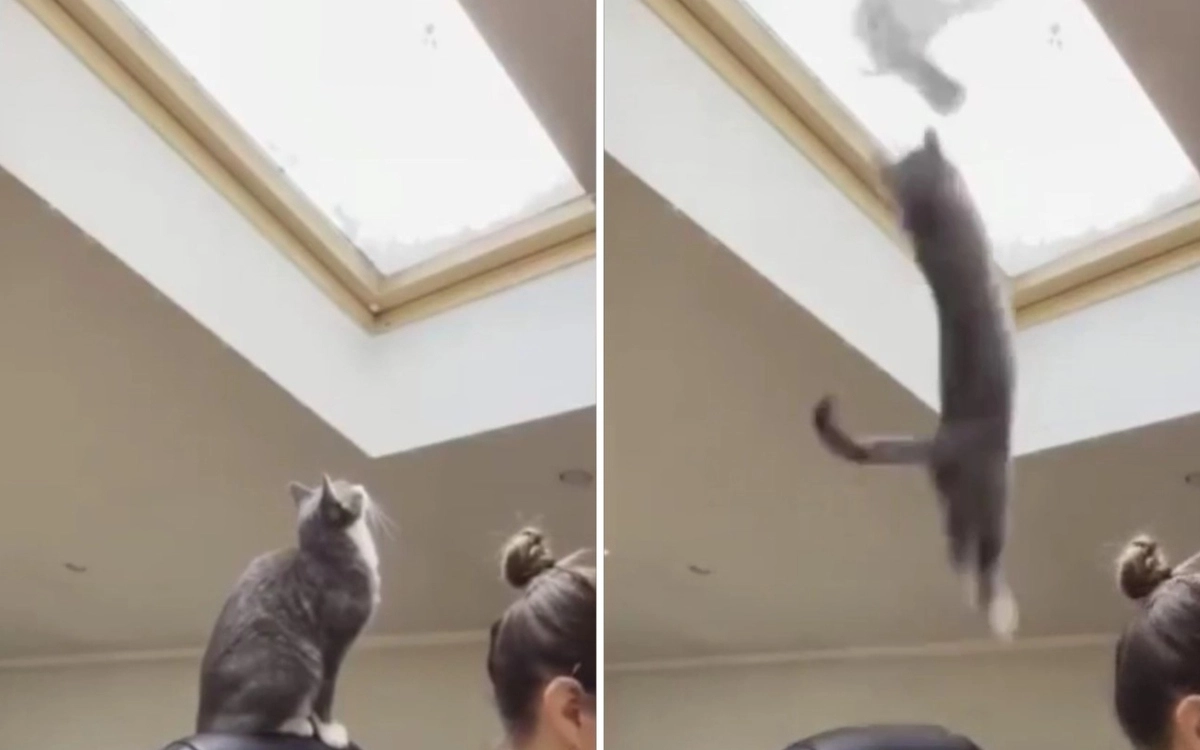 Ловкость у кота просто отличная. Жаль, стекло помешало.