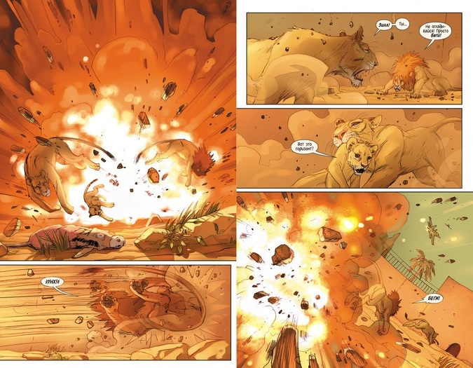 Здесь, кстати, появляется ещё один значимый персонаж, напоминающий «несгибаемых сторонников Саддама и террористов всех мастей, использовавших насилие в надежде сохранить статус-кво». К чести львиц, они не собираются покоряться его клыкам без боя: