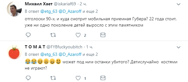 «Могильный памятник криминальному авторитету на детской площадке в центре Самары — это, конечно, сильно. Как раз сейчас еду в Октябрьский район. Посмотрю на месте», — написал в Twitter Хинштейн.