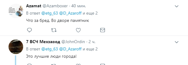 На пост местной жительницы отреагировал бывший депутат Госдумы, советник директора Росгвардии Александр Хинштейн. Он пообещал лично демонтировать «криминальный пантеон», если факт его существования подтвердится.