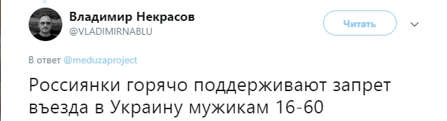 По мнению одного из пользователей, российские женщины должны приветствовать такое решение украинских властей.