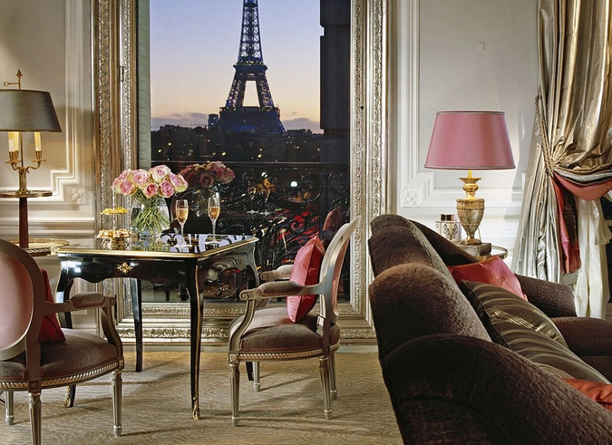 Из номеров люкс пятизвездочной гостиницы Plaza Athenee в Париже открывается один из лучших видов на Эйфелеву башню.