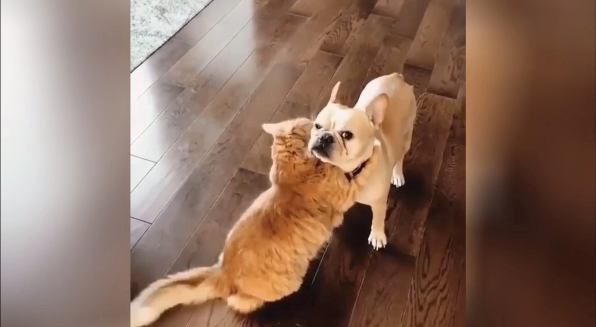Ох и вреднющие существа эти кошки! Они бывают ласковыми, только когда им этого хочется, но, если кто-то попытался пристать к ним не по расписанию, царапин не избежать. На видео попали объятия кошки и маленького французского бульдога, больше напоминающие смертельный удушающий захват. А все потому, что не нужно было лезть под горячую умывающуюся лапу.