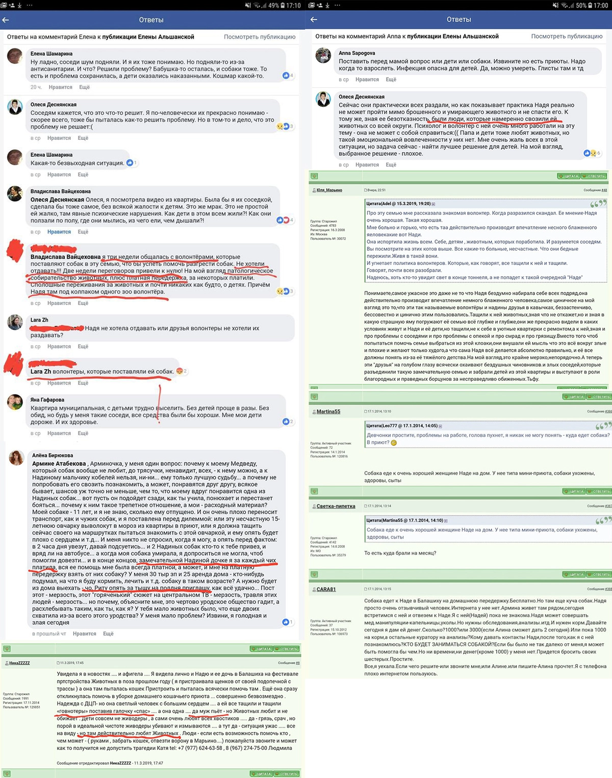 «Дальше я пошла на форум „Пес и кот“ и обнаружила несколько тем с обсуждениями этой истории. Часть из них уже удалена из общего доступа. И оказалось, что безотказностью Нади пользовались вовсю: ей не просто поставляли животных, но и осуществляли сбор на их содержание. В частности, в одной из историй упоминается некая Армине Атабекова, даются номера ее телефона и яндекс-кошелька. Вопрос, сколько из собранного дошло до Нади, фактически заботившейся о собаках, остается открытым. Самое ужасное, что люди продолжали приводить Наде животных, зная, насколько ужасные условия у нее дома, и понимая, что 50 животных в квартире — это издевательство, а не помощь. Даже помойка лучше и безопаснее», — поясняет эксперт в сфере мошенничества в благотворительности.