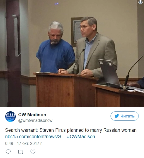 Следствие установило, что житель штата Висконсин Стивен Пирус убил собственную жену ради союза с россиянкой.