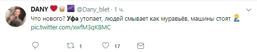 Пользователи публикуют в соцсетях видео уфимского потопа. «Вот такая у нас обстановка в Уфе. Первый осенний дождь. Уфа любит плавать», — пишет один из блогеров.