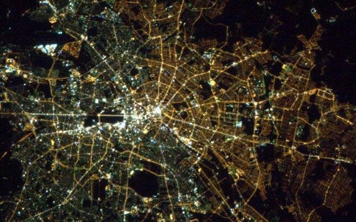 16. «Даже почти через 25 лет после падения берлинской стены, разницу в типах лампочек в западной и восточной частях Германии всё ещё можно увидеть из космоса»