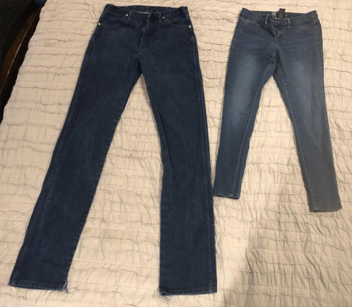 24. «Мои джинсы против джинсов моей жены. Я 192 см, она 158 см»