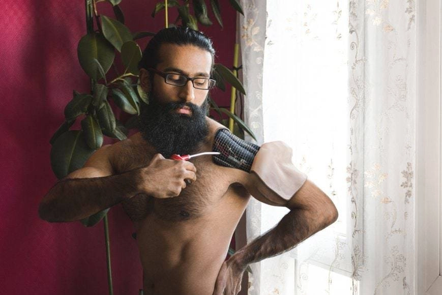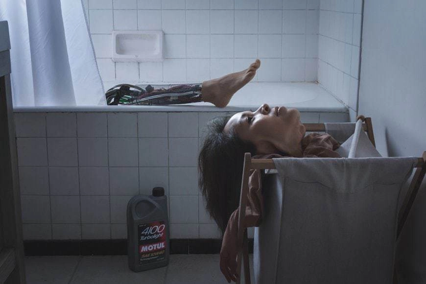 «В этом фотопроекте я пытаюсь проецировать себя на интимность повседневной жизни, укоренившейся в мире, где граница между человеком и машиной размыта», — рассказал Николя HuffPost.