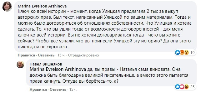 В социальных сетях начались горячие споры об авторстве «чумного» сценария. Многие пользователи встали на сторону Улицкой, считая, что Рапопорт должна быть ей благодарна за помощь или что писательница просто запуталась в фактах и датах.
