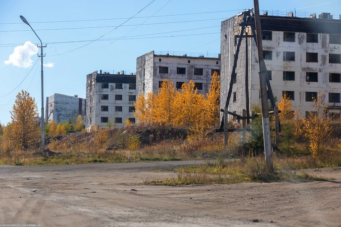 Из клочьев тумана выступают поселки с заброшенными зданиями.