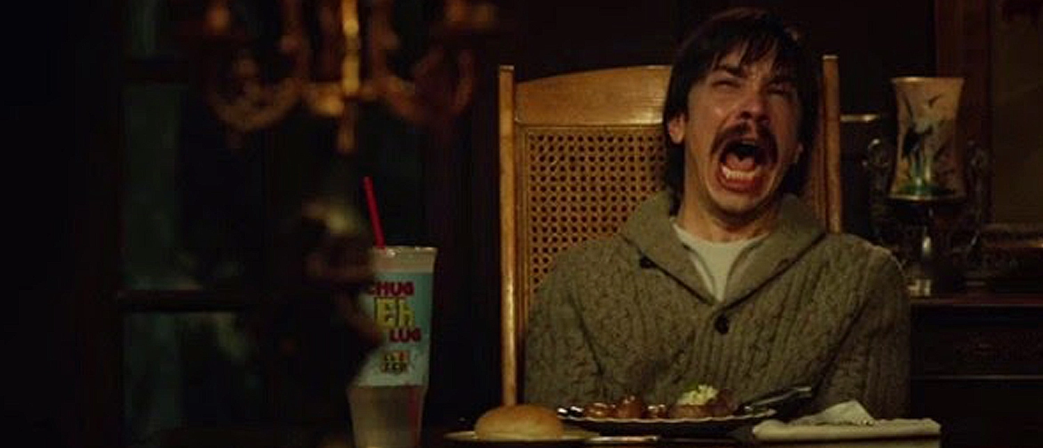Но хохма про соседей «Я не хочу умереть в Канаде» лишь в первый момент кажется смешной, потому как тут же получает развитие: «Я вообще не хочу умирать». Что на время превращает комедию в ужастик. В котором старик для начала отрезает насмешливому гостю ногу — но только для начала… Впрочем, вскоре уже ужасы обернутся здесь истерическим хохотом. Заставляющим вспомнить одну из первых фраз, прозвучавших в картине: