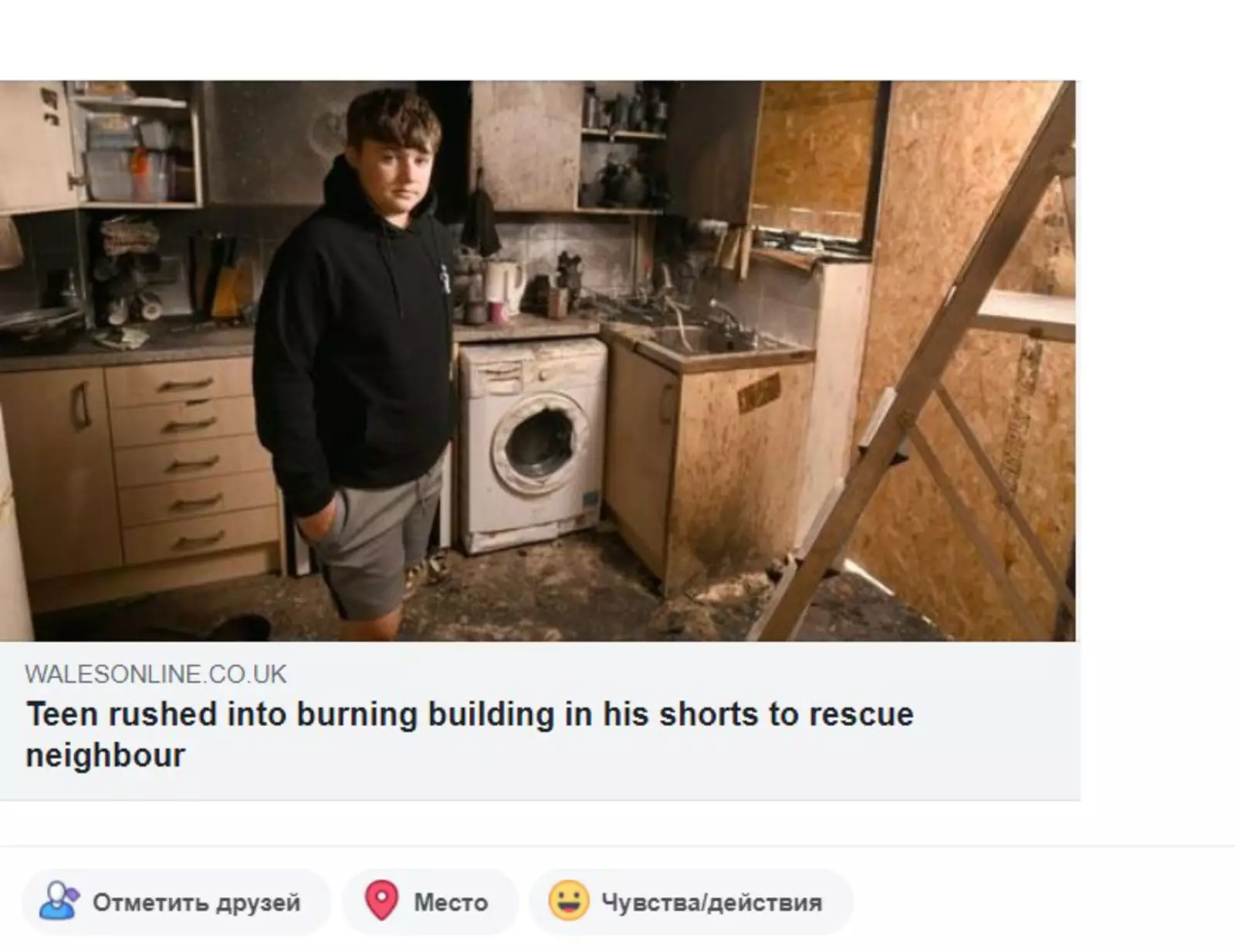 15-летний мальчик из Суонси (Уэльс, Великобритания) по имени Льюис Эванс стал местным героем, после того, как его решительные и быстрые действия спасли 60-летнюю женщину от огня в ее доме.