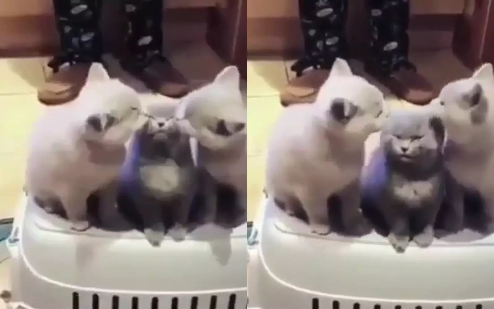 Маленький любимец женщин: кошки зацеловали кота и умилили интернет