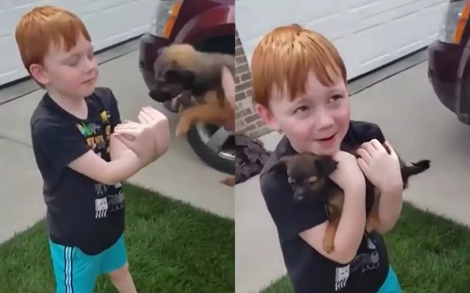 Пользователи были тронуты реакцией ребенка на подаренного ему щенка.