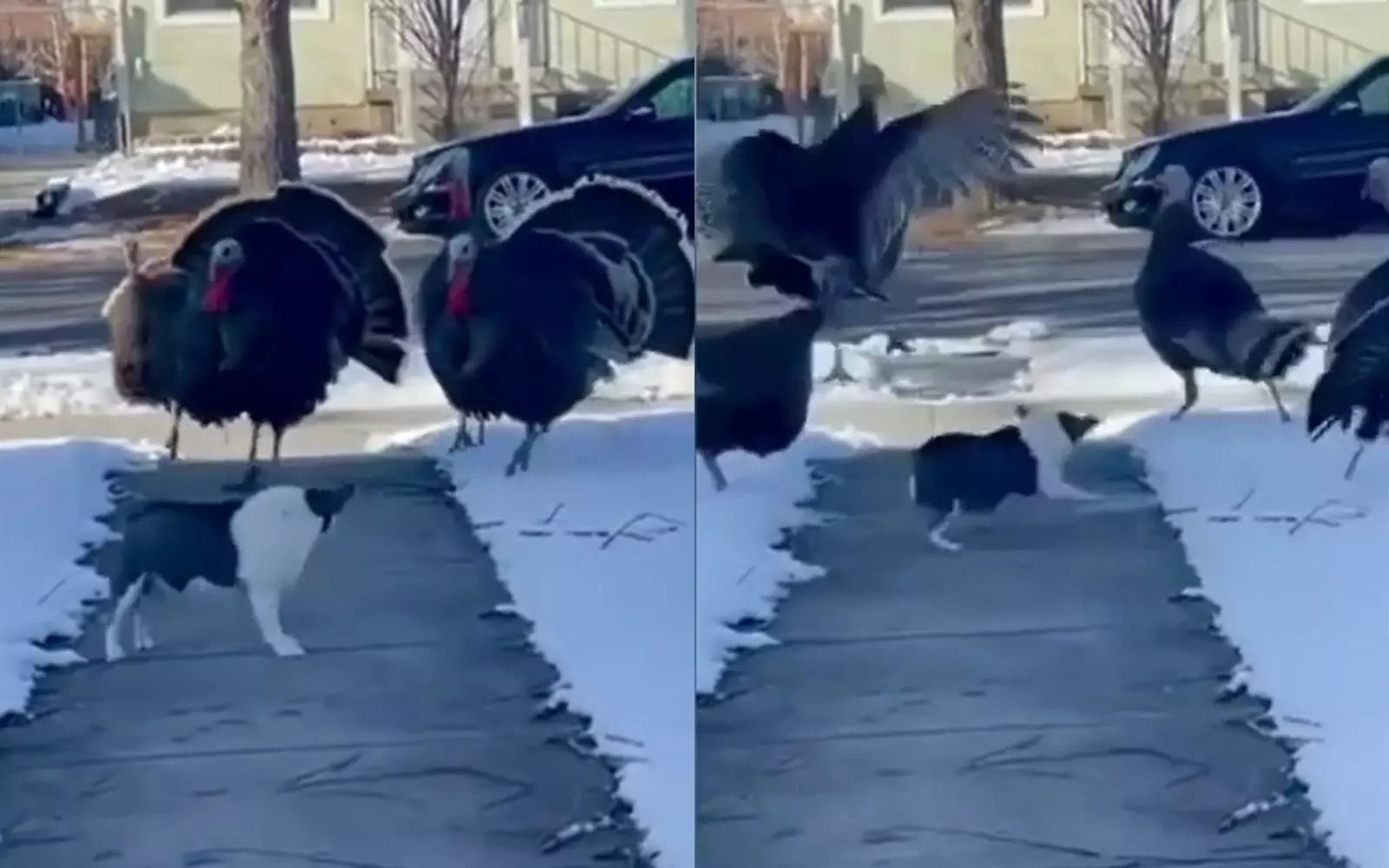 Маленький пес столкнулся с бандой индюков и показал им, кто главный