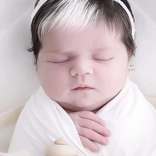 Малышка, родившаяся с прядью белых волос, очаровала соцсети