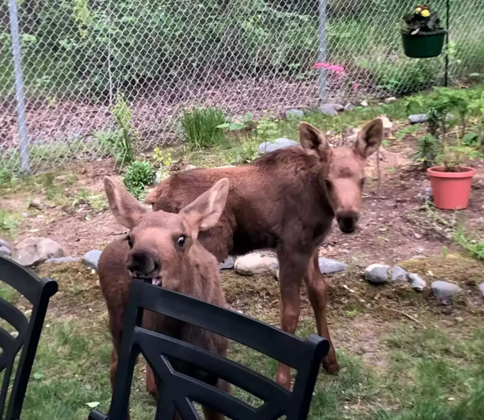 Животные отлично проводили время на заднем дворе американца: отдыхали, грелись на солнышке, жевали травку и играли. В общем, превратили территорию человека в личную игровую площадку. В какой-то момент звери встали и ушли, но вскоре снова вернулись, а вечером во дворе Роланда появилась еще одна семья лосей.