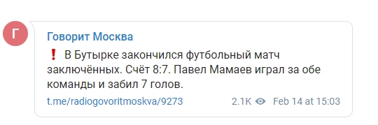 Как сообщает паблик радиостанции «Говорит Москва», встреча завершилась со счетом 8:7.