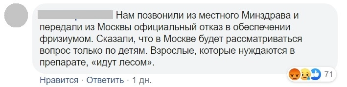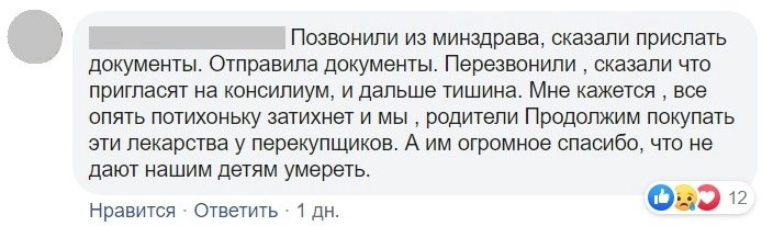 Собеседница «Ридуса» уверена, что все попытки получить препарат легально ни к чему не приведут — «все бесполезно, отчитаются, что всем все закупили, и замнут».