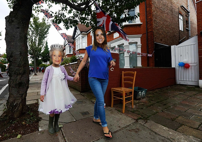 Мать и дочь в масках, изображающих королеву Елизавету II и герцогиню Кэтрин на праздновании 60-летия правления королевы Великобритании. © Luke MacGregor/Reuters