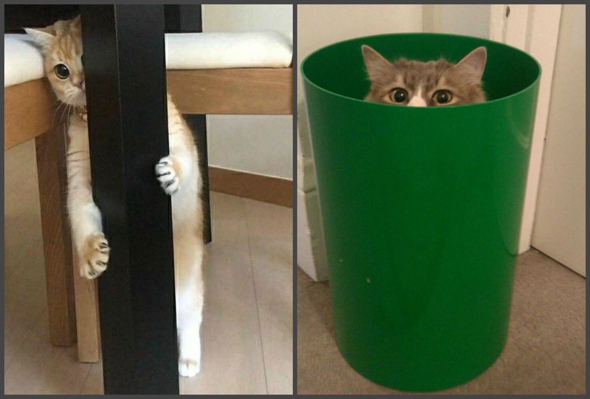 Эти кошки явно считают себя ниндзя, но их «мастерство» видно и невооруженным глазом. Таким хвостатым «профессионалам» впору писать книгу вредных советов по искусству кошачей скрытности.