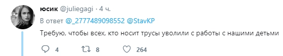 В отличие от предыдущих громких скандалов с «непристойным» поведением педагогов, абсолютное большинство комментаторов оказалось на стороне учительницы, которой вменили в вину обычную житейскую ситуацию. Пользователи Сети стали предполагать, от каких еще бытовых действий следует отказаться учительницам, чтобы не «повлиять плохо» на подопечных.