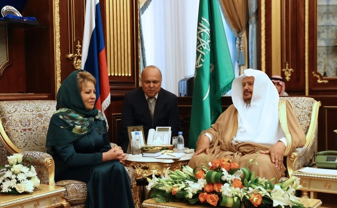 Спикер Совета Федерации Валентина Матвиенко для своего официального визита в Саудовскую Аравию и встречи с королем Сальманом бен Абдель-Азиз Аль Саудом выбрала зеленое платье в пол и платок, который полностью покрывал ее голову. За проявление должного уважения к традициям страны ее поблагодарили женщины-депутаты Консультативного совета.