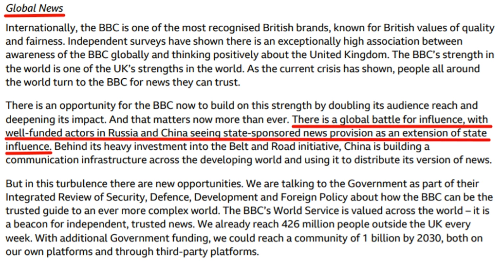 В отчете компании указано, что львиная часть этих средств пойдет на усиление информационного воздействия BBC в России и Китае.