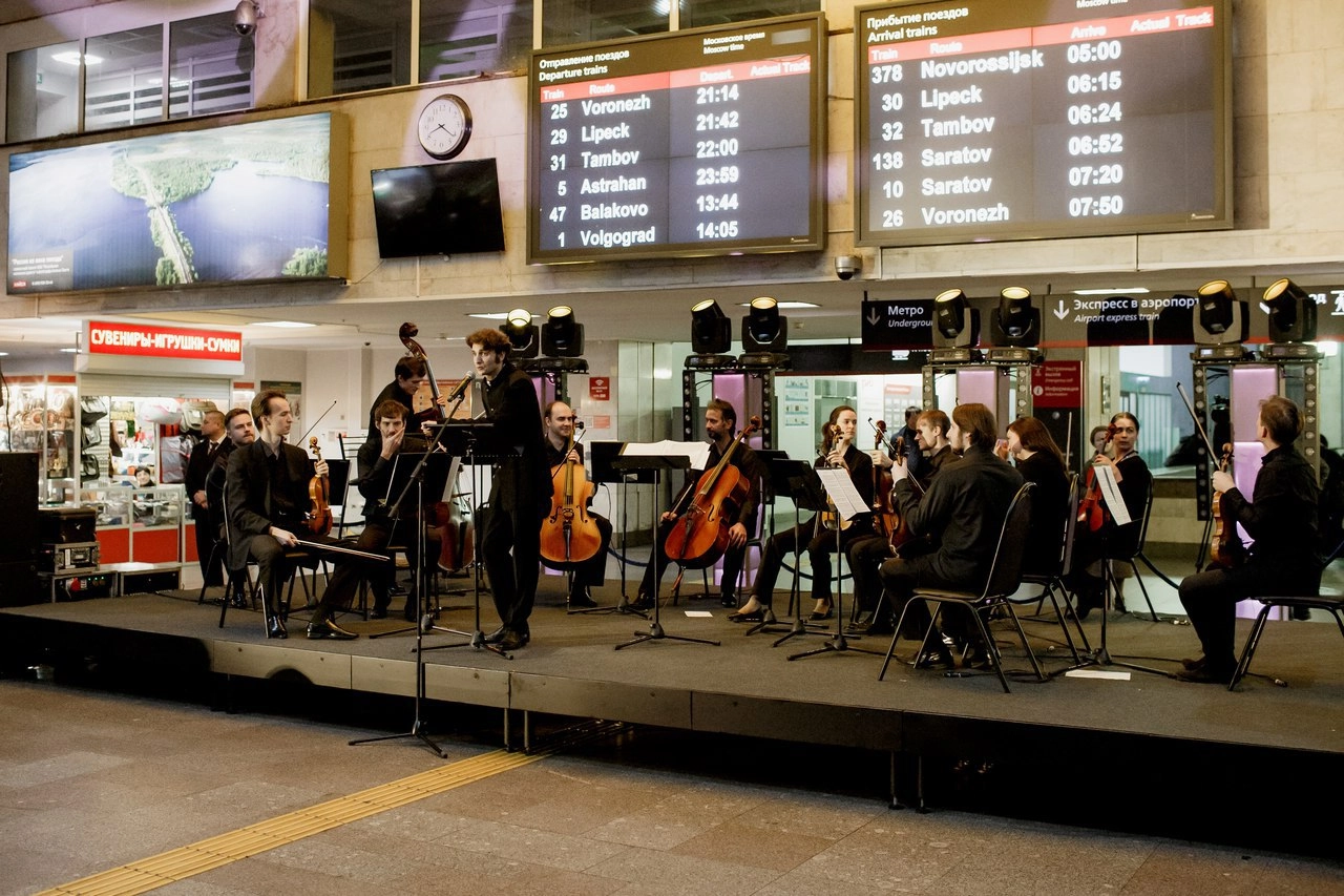 В «Ночь искусств» на столичных вокзалах — Казанском, Павелецком, Ярославском и Киевском — звучали разные произведения, от композиторов