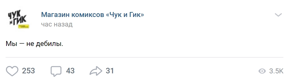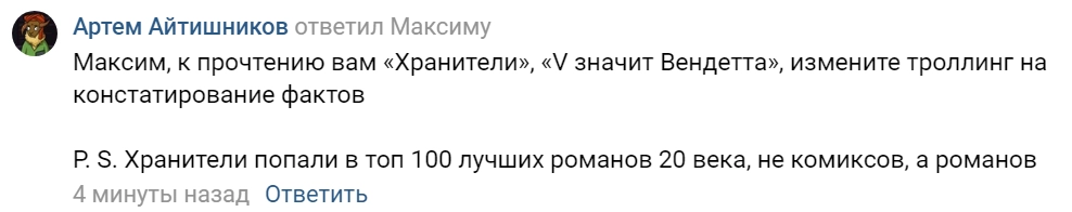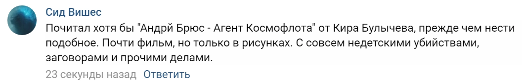«Но взрослому человеку читать комиксы, мне кажется это убожеством», — цитирует его РИА «Новости».