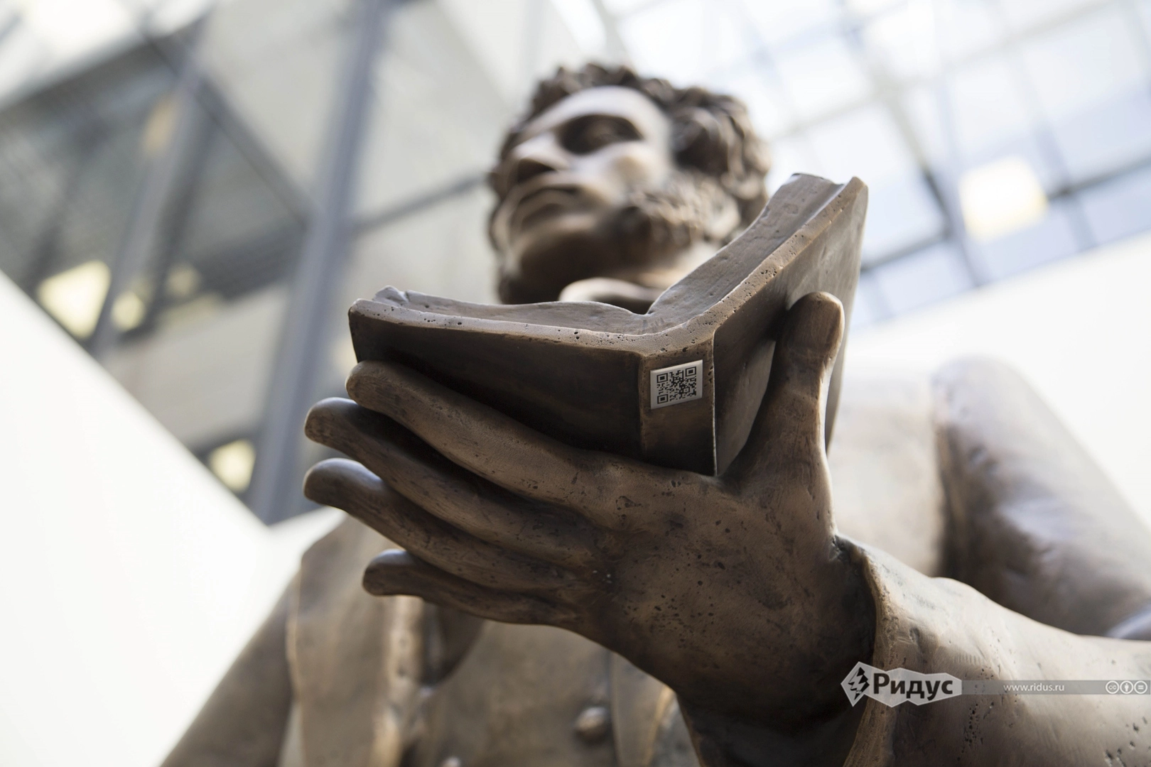 В новой скульптуре поэт увековечен в полный рост с книгой в руках. Примечателен тот факт, что под книгой у поэта спрятан QR-код, сканировав который вы получаете электронный доступ к нескольким известным произведениям поэта.