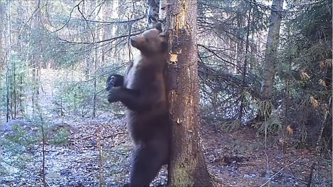 Сотрудники Висимского заповедника Свердловской области заметили, что местная знаменитость — медведь Ферапонт — стал частенько наведываться к одной старой ели и проводить там много времени. Чтобы выяснить, чем там занимается косолапый, напротив дерева установили фотоловушку. Кадры, снятые на неё, оказались весьма неожиданными — мишка Ферапонт приходит к старой ели, чтобы… танцевать! Причём медвежий танец выглядит очень сексуально: хозяин тайги встаёт на задние лапы, извивается, трясёт головой, обнимает дерево и с удовольствием трётся о его ствол.