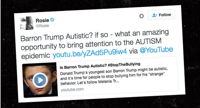Носителем этой болезни Рози объявила Бэррона Трампа.