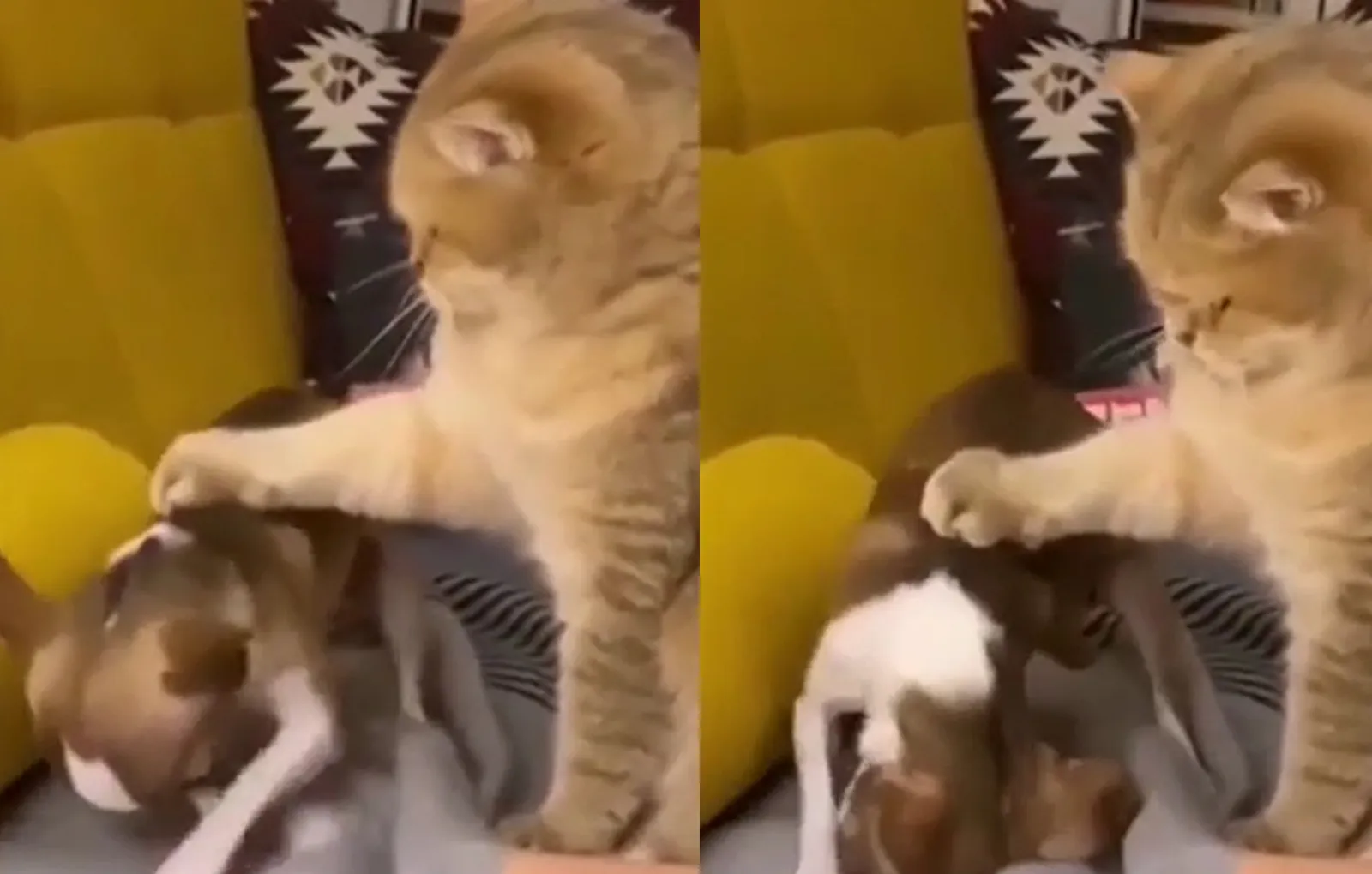 «Мелкий, расслабься»: трогательные попытки кота успокоить нервного пса сняли на видео