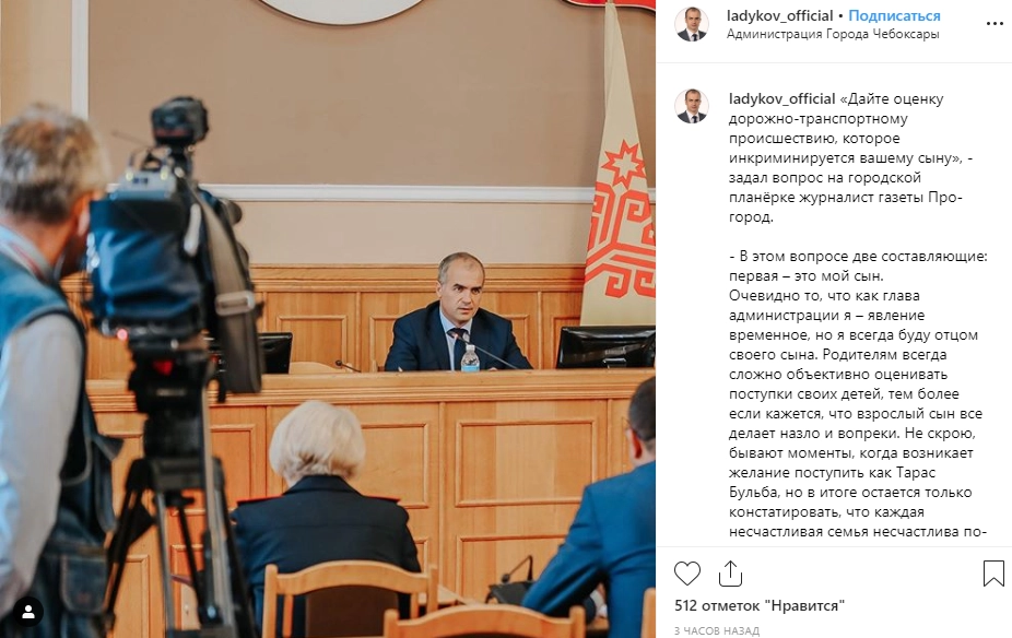 «Очевидно то, что как глава администрации я явление временное, но я всегда буду отцом своего сына. В итоге остается только констатировать, что каждая несчастливая семья несчастлива по-своему», — написал глава столицы Чувашии в своем аккаунте в Instagram.