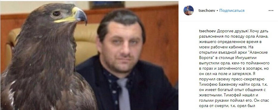 Сам мэр столицы Ингушетии объясняет свое внимание к животным особенностями национальной культуры.
