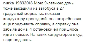 В этом же городе школьницу, потерявшую родителей, выгнали из автобуса на улицу в тридцатиградусный мороз. Девочка была вынуждена добираться домой пешком без денег.