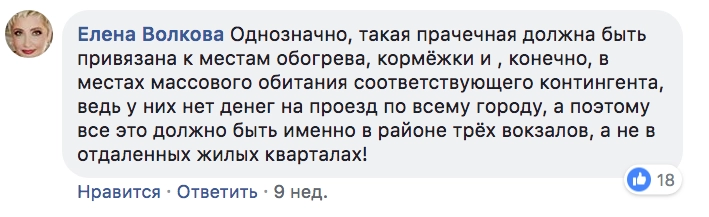 Эти люди, говорившие «мы за благотворительность, но только не в нашем районе», борются уже даже не с прачечной для бездомных, а со сбором денег на расположенные в другом городе пункты обогрева. Местом, где нуждающиеся люди могут провести ночь в тепле. Тут уж точно людьми движет не забота о здоровье детей или беспокойство о ценах на недвижимость. Что это, а? Я как-то совсем-совсем перестал понимать.